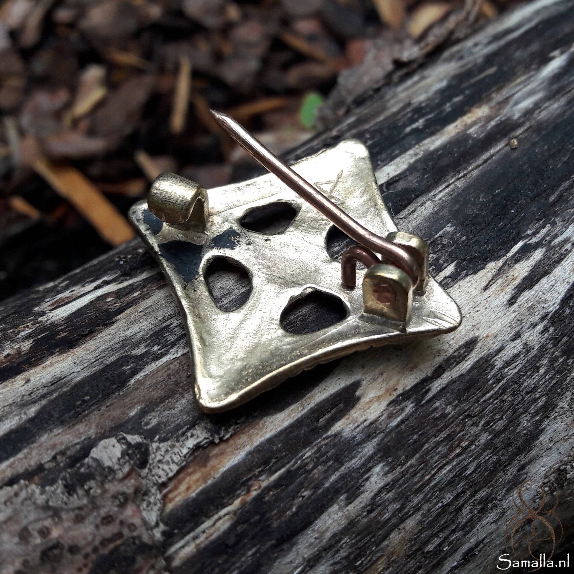 Het origineel van deze uitzonderlijke Vikingbroche in de Borre-stijl werd gevonden tijdens opgravingen in Uppåkra in Zuid-Zweden en dateert uit de 10e eeuw. Deze replica van de diamanten broche uit Uppåkra is zorgvuldig vervaardigd in de Borre-stijl en nauwkeurig gepolijst om het vakmanschap te benadrukken. De punten van de diamantvorm eindigen in vier dierenkoppen. Deze dierenkoppen symboliseerden mogelijk de vier windrichtingen , die in de Germaanse Edda worden aangeduid als Nordri, Sudri, Austri en Westri, en die als afzonderlijke entiteiten werden beschouwd.